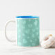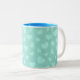 Beautiful green & white hearts two toned coffee and tea mug with a light blue interior.