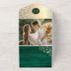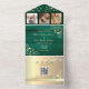 Celebrate your love with our elegant, country-inspired all-in-one wedding invitation. Featuring a stunning combination of gold and rustic wood with emerald green accents, this design is adorned with string lights and vintage boho floral lace. Personalize it with four custom photos of the couple, and include your website and QR code for RSVP and additional details.