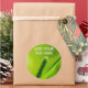 Macro view of a flower spike and a leaf of a wildgrass, vanilla grass, Anthoxanthum odoratum, sweet vernal grass, holy grass or buffalo grass against the green gackground and the light of the raising sun. The new day of the planet Earth. Let us keep our planet green, clean and in peace. Round sticker. Customizable. You can change or delete the template text.