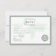 Green World Map Destination Wedding Date Stamp RSVP Card
