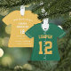 Commemorate an awesome season for your favorite baseball player with this cool custom ornament in a green and yellow colorway. Personalize the front with the player's name and number, and add more details to the back, including the team or league name, season, age, position, and coach name.