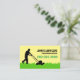 Lawn mowing business card with bright green and yellow colors. These client cards include space to add your professional services offered, your phone, email, website, social media for Facebook and Instagram, and any important information you want to include to promote your lawn care company.