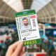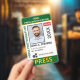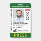 Medium sized 3"x5" vertical press ID with eye-catching yellow and green as the accent colors. Add photo, your news publication logo, the reporter's name, title, the badge ID number and more. This Press ID is in a slightly larger size for easy visibility. Add your QR code to the back as well.
