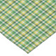 This tablecloth is shown in a green, yellow and white plaid print.