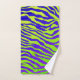 Bright green and purple zebra stripes design.