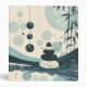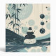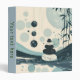 Binder with abstract design featuring a pebble sculpture, water and bamboo in peaceful, calming shades of green and teal. The spine has customizable text.