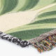 A quality printed throw has its advantages. This is a much finer weave throw than its loopier cousins, and though lighter, it is worth the investment for custom room accessorizing. The back is much prettier than the typical brown, and the fringe on the long sides very vivid, the selvage nicely done. Before photographing, I washed the throw in cold water, delicate, with a thicker woven throw the same size. On tumble dry low, this throw was dry in half the time as the other. This is a very practical quality if you use throws for furniture covers or to wrap up in frequently. The sleekness of the fabric makes it a great layer for accenting or protecting without the feeling of sitting on too much stuff. Perfect for napping or when you feel a light chill coming on. The color printing is beautiful and on this fabric, matched the design and color of my Photoshop image. This is an advantage for blending room fabrics and colors. The fringe on the short sides prints the colors from the design image and therefore varies from the side fringe. I streaked a white fractal line through the plaid pattern to give the illusion of weaving. This printed as crisp as an illusory thread, and put some white in the short side fringe, showing another advantage of print vs loomed- for artistic purposes, line lines, detail, and color integrity can be planned and preserved. My loomed throws have color limitations and more of a needlepoint texture. Print throws reproduce an exact image. The throw felt a little stiff straight out of the package, but this went away in the first delicate wash. Of course I searched the wash water for ink or bleeding and there was none.