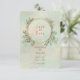 This Save the Date card matches the beautiful pale green background with greenery in a gold frame invitations