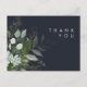Greenery and Gold Leaf Dark Navy Wedding Thank You Postcard