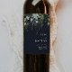Greenery and Gold Leaf | Dark Navy Wedding Wine Label