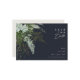 We designed this greenery and gold leaf script dark navy horizontal save the date to complete your simple yet elegant boho wedding. It features modern green and white fern foliage, a succulent flower, and minimal gold foil leaves. These elements give the feel of a whimsical watercolor enchanted forest, perfect for any rustic, bohemian wedding! Feel free to customize and make it your own; also, feel free to look through the rest of the collection for matching and coordinating products!