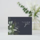 Greenery and Gold Leaf Script Dark Navy Thank You Postcard