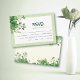 Celebrate your St. Patrick's Day wedding in style with this charming Irish wedding RSVP card. The design exudes a vintage vibe, showcasing a delightful combination of lovely greenery and elegant stripes. The upper left corner is adorned with a tasteful arrangement of lush greenery, while a pale green striped pattern frames the card beautifully. On the back, you'll find two borders adorned with more enchanting greenery. Although it deviates from the traditional clover motif, the card's captivating appeal lies in its use of a Celtic font and the abundance of vibrant greenery, making it a truly stunning choice for your special day.