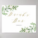 Greenery and White Flowers Wedding Drinks Bar Poster