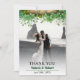 This rustic wedding thank you card features a vintage style design with a combination of wood and greenery, perfect for a spring wedding. The upper part of the card showcases a beautiful arrangement of wood and greenery, while the center features a lovely photo of the couple. The phrase 'Thank You' is prominently displayed beneath the photo, adding a heartfelt touch to the card. Turning the card over, you'll find a continuation of the greenery theme at the bottom, tying the design together seamlessly.