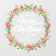 A watercolor wreath of greenery and berries and the words - We Wish You a Merry Christmas and a Happy New Year (or any text) are featured on this window cling - Choose ANY SIZE and **front or back cling. (Size shown is 24" x 24", but can be made larger or smaller.)