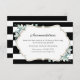 You can slip this enclosure card into your wedding invitations to let out of town guests know of any hotel arrangements or group codes. Easy to personalize template. Matching items available. Black and white greenery wedding enclosure card featuring eucalyptus leaves against a black and white striped background.