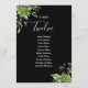These elegant botanical greenery floral wedding table numbers can be personalized with your guests' seating plan set in chic typography on a black background. The cards are printed on the front and back (double-sided). Designed by Thisisnotme©