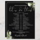 This stylish black and white greenery wedding schedule timeline can be personalized with your wedding details in chic typography. Designed by Thisisnotme©