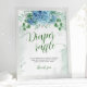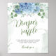 Greenery Blue hydrangea Diaper Raffle Baby Shower Poster. Matching items available.