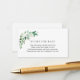 A book request insert card for baby shower. Featuring white flowers and greenery and poem: "ONE SMALL REQUEST, WE HOPE NOT TOO HARD