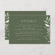 Boho Sage Greenery Botanical Olive Elegant Simple Wedding Details Enclosure Card. Bohemian-style arranged botanical minimalist Details Card with elegant and simple boho sage green botanicals in hand-printed watercolor. The green watercolor background is gorgeous for boho weddings and green weddings. Editable Details Card for spring, summer, fall (autumn), and winter weddings.
