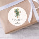 Greenery Cross Minimalist Baptism Christening Classic Round Sticker