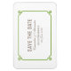 Simple and minimalist Deco Chic Save the Date Flexi Magnet with a modern green art deco ornamental border. This classic and elegant save the date magnet is easy to customize with your wedding details. Find more personalization options by clicking Customize.