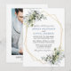Greenery Dusty Blue Geo Frame Photo Wedding Invitation