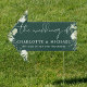 This elegant emerald green greenery floral wedding direction sign can be personalized with your information in chic lettering. Designed by Thisisnotme©