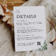 Elevate your wedding invitation suite with this Greenery Enclosure Card-The Details. Add all the essential details to inform your guests about the wedding ceremony, reception, transportation and accommodations. Customize every aspect to match your wedding theme and style. Create a memorable and elegant invitation suite that perfectly captures the essence of your special day.