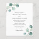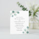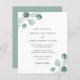 Elegant budget wedding invitation with a simple design featuring watercolor painted eucalyptus greenery in the upper left corner and lower right corner. The backside is a matching shade of medium sage green. This rustic botanical wedding invitation with a modern twist is perfect for a spring or summer wedding. These cheap wedding invitations are printed on sheets of paper for a budget friendly option.