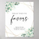 Greenery Eucalyptus Geometric Wedding Favors Sign Poster. Features watercolor eucalyptus leaves and a gold geometric frame.
