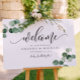 green leaf welcome sign, gold welcome sign, welcome wedding sign, wedding welcome sign, printed sign, sign template, event sign, porch sign, elegant wedding sign, chic weddings, gold wedding, gold heart, calligraphy welcome sign, calligraphy wedding welcome sign, Eucalyptus Leaf