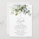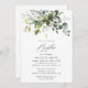 Invite friends and family in style and set the tone for your special day with this elegant baptism invitation. Design features eucalyptus leaves and greenery on white background.