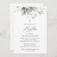 Invite friends and family in style and set the tone for your special day with this elegant baptism invitation. Design features eucalyptus leaves and greenery on white background.
