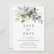 Invite friends and family in style and set the tone for your special day with this charming save the date card. Design features eucalyptus leaves and greenery on white background.