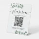 Greenery Eucalyptus Leaves Wedding Program QR Code Pedestal Sign