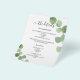 A modern, elegant wedding details/program/timeline. A white background decorated with eucalyptus greenery, sprigs. Personalize and add your names and wedding details. Black colored letters.