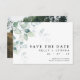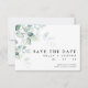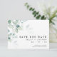 This modern wedding save the date card features a lovely eucalyptus arrangements on the left side of the save the date card . This design also features the couple's photo on the back of the card however this can be removed and a color added. This greenery or foliage save the date is ideal for a couple having a rural farm or greenery eucalyptus themed wedding.