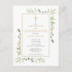 Featuring delicate watercolor leaves and an elegant gold crucifix, this chic confirmation save the date invitation can be personalized with your special information, with a gold background on the reverse. Designed by Thisisnotme©