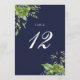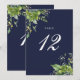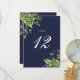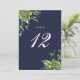These elegant botanical greenery floral wedding table numbers can be personalized in chic typography on a navy blue background. The cards are printed on the front and back (double-sided). Designed by Thisisnotme©
