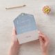 All-in-one wedding invitation featuring floral greenery and elegant typography on a dusty blue background. The invitation includes a perforated RSVP card that can be individually addressed or left blank for you to handwrite your guest's address details. Designed by Thisisnotme©