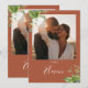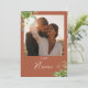 These elegant botanical greenery floral wedding table numbers can be personalized with your photo and table numbers in chic typography on a terracotta background. The cards are printed on the front and back (double-sided). Designed by Thisisnotme©