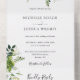 This all-in-one wedding invitation features botanical greenery falling across elegant typography. The invitation includes a perforated RSVP card featuring a QR code. Designed by Thisisnotme©
