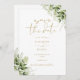 This elegant botanical greenery leaves save the date invitation can be personalized with your information in chic gold typography with your wedding website QR code and details on the reverse. Designed by Thisisnotme©