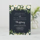 Greenery Floral Royal Blue Front & Back Wedding Invitation
