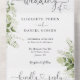 Greenery Floral Script Hearts Minimalist Wedding All In One Invitation