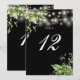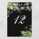 These elegant botanical greenery floral string lights wedding table numbers can be personalized in chic typography on a black background. The cards are printed on the front and back (double-sided). Designed by Thisisnotme©