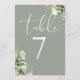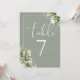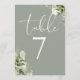 Elegant sage green wedding table numbers featuring floral greenery. The cards are printed on both sides (double-sided). Designed by Thisisnotme©